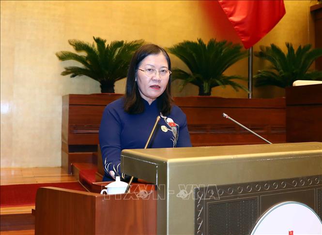 Chủ nhiệm Ủy ban Tư pháp của Quốc hội Lê Thị Nga trình bày Báo cáo thẩm tra Báo cáo về công tác phòng, chống tham nhũng năm 2022. Ảnh: Phạm Kiên/TTXVN