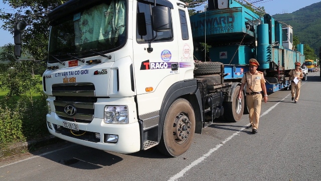 Trước đó, trên QL 1A (đoạn đi qua địa bàn huyện Phú Lộc), tổ công tác đặc biệt của lực lượng CSGT Công an tỉnh phát hiện hai xe đầu kéo mang biển số BKS 73C – 061.32 kéo theo rơ móc 73R – 003.18 và xe BKS 73C - 054.92, rơ móc 73R – 003.99 của công ty Vận tải Cơ giới Hải Sơn có dấu hiệu vi phạm Luật Giao thông đường bộ.