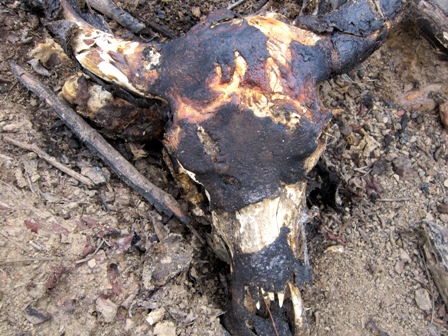 Đầu trâu bị đốt cháy do ông Thân phát hiện