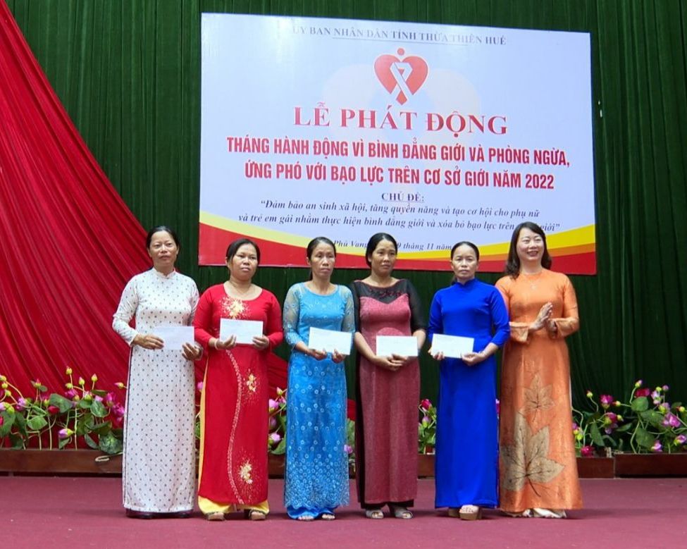 HNN.VN - Ngày 19/11, tại huyện Phú Vang, UBND tỉnh tổ chức Lễ phát động Tháng hành động vì bình đẳng giới và phòng ngừa, ứng phó với bạo lực trên cơ sở giới năm 2022 với chủ đề “Đảm bảo an sinh xã hội, tăng quyền năng và tạo cơ hội cho phụ nữ và trẻ em gái nhằm thực hiện bình đẳng giới và xóa bỏ bạo lực trên cơ sở giới”. Dự buổi lễ có bà Nguyễn Thị Ái Vân, Phó Chủ tịch HĐND tỉnh.