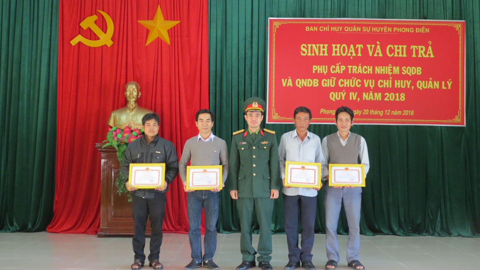 Dịp này, Ban Chỉ huy quân sự huyện Phong Điền đã tặng giấy khen cho 4 cá nhân có thành tích xuất sắc trong công tác dự bị động viên năm 2018 và trao các quyết định phong quân hàm, bổ nhiệm, miễn nhiệm, giải ngạch cho các quân nhân dự bị.