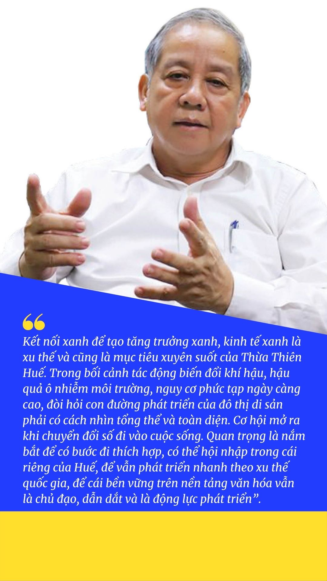 Kết nối xanh không đơn thuần là tạo mảng xanh giữa các đô thị mà là sự kết nối giữa bảo tồn và phát triển, giữa truyền thống và hiện đại, giữa cái thâm trầm của Cố đô với sôi nổi của đổi mới; phát triển trong kết nối các giá trị sinh thái thiên nhiên và nhân văn là nền tảng phát triển bền vững.
