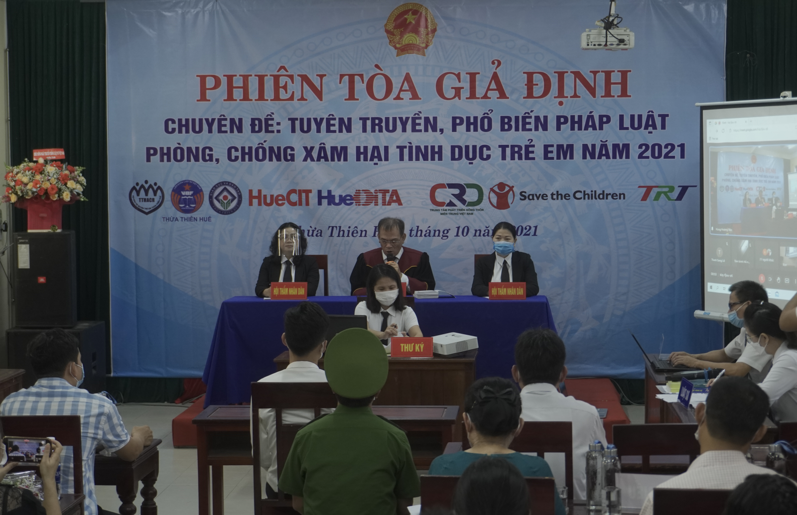 HNN.VN - Sáng 10/10, Hội Bảo vệ quyền trẻ em tỉnh Thừa Thiên Huế phối hợp với Trung tâm Phát triển Nông thôn Miền Trung (CRD) - Trường đại học Nông Lâm, Đại học Huế và Đoàn Luật sư tỉnh Thừa Thiên Huế tổ chức phiên tòa giả định với chủ đề "phòng, chống xâm hại tình dục trẻ em" tại Trường THCS Phạm Văn Đồng. Bà Nguyễn Thị Ái Vân, TUV, Phó Chủ tịch HĐND tỉnh tham dự.
