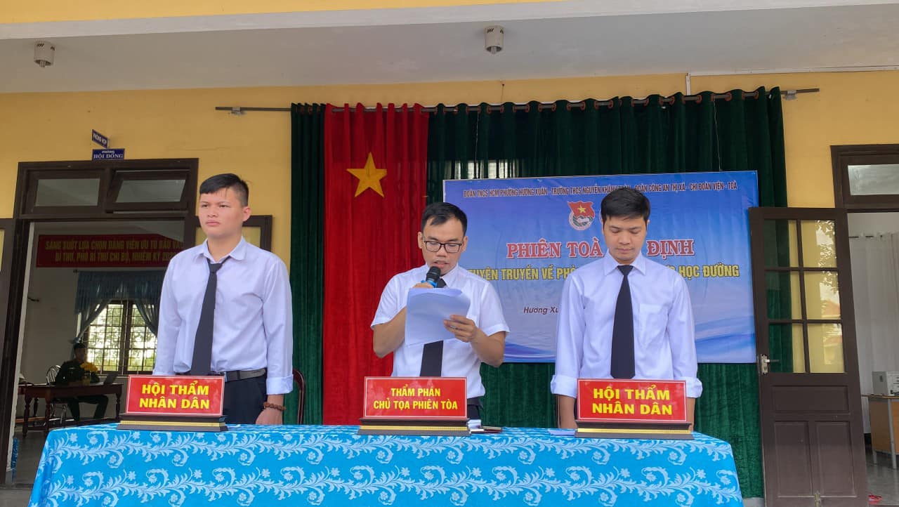 Phiên tòa giả định với hình thức tuyên truyền trực quan, sinh động thu hút các em học sinh chăm chú theo dõi. Qua đó lồng ghép những nội dung tuyên truyền để thanh, thiếu niên thấy được các hành vi vi phạm pháp luật.