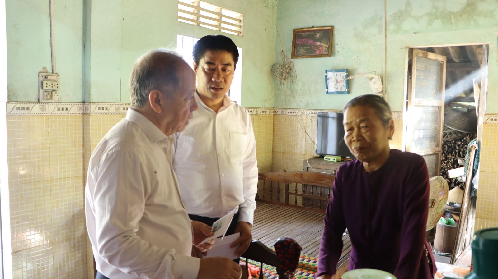 Phó Bí thư Thường trực Tỉnh ủy Phan Ngọc Thọ (trái) thăm hỏi, tặng quà cho gia đình chính sách
