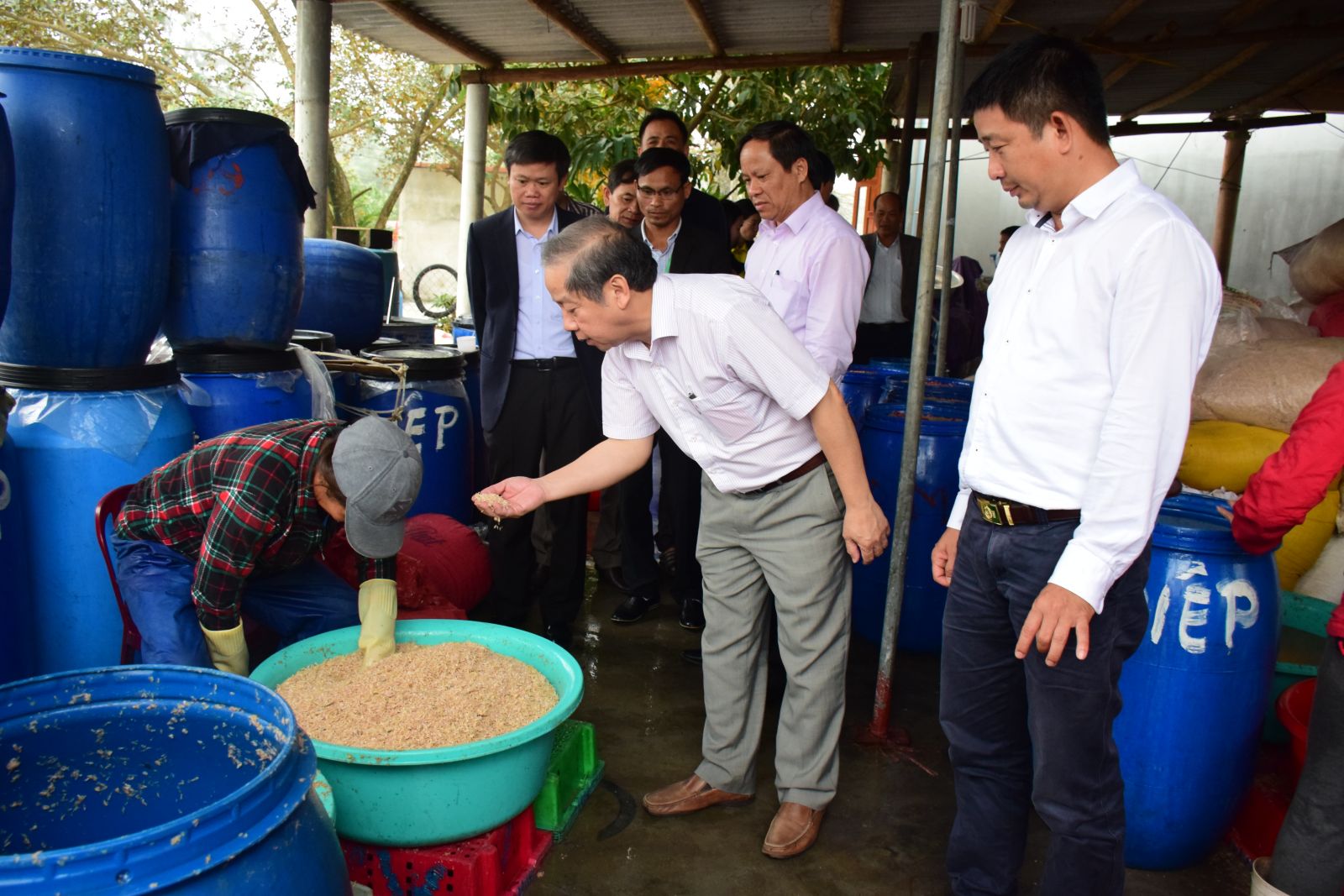 Phó Chủ tịch Thường trực UBND tỉnh Phan Ngọc Thọ xem quy trình sản xuất tại làng nghề nước mắm An Dương