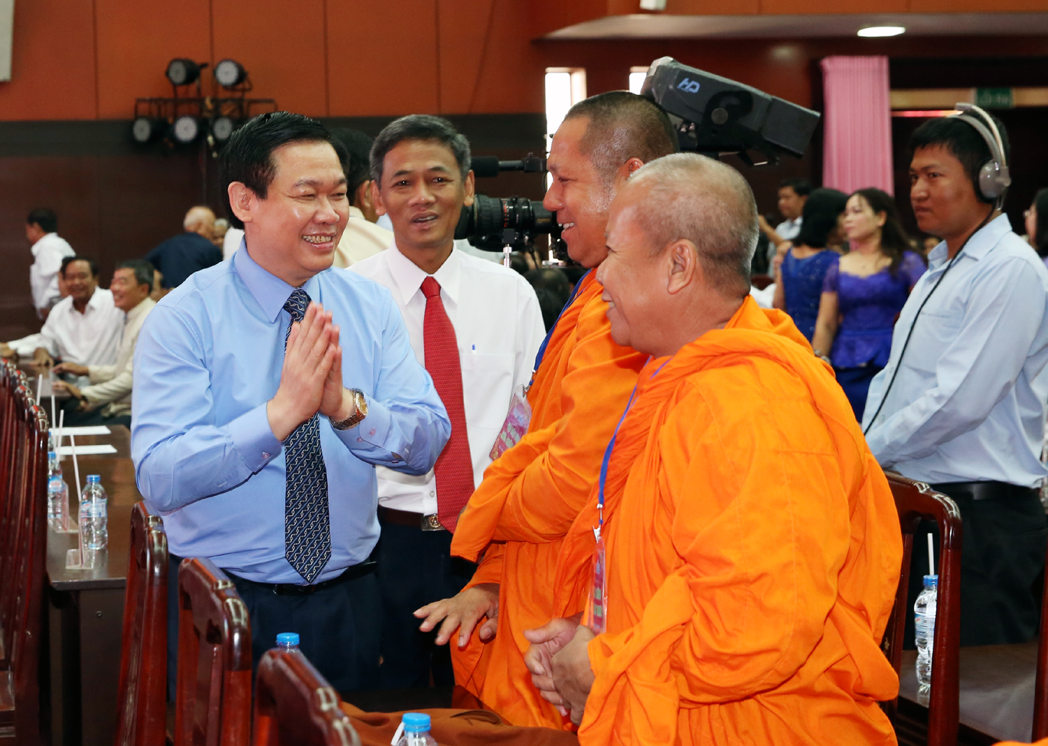 Phó Thủ tướng Vương Đình Huệ dự buổi gặp mặt cán bộ, chư tăng, tăng sinh, học sinh, sinh viên, gia đình chính sách là người dân tộc Khmer để đón mừng Tết cổ truyền Chol Chnam Thmay 2017