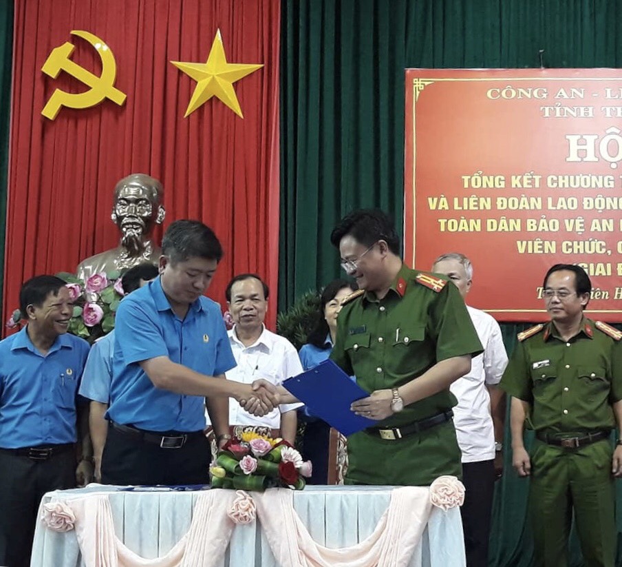 Tại hội nghị, LĐLĐ tỉnh đã tặng 8 bằng khen cho các cá nhân và 5 bằng khen cho các đơn vị công an. Công an tỉnh cũng đã tặng 13 giấy khen cho các cấp thể và cá nhân thuộc LĐLĐ tỉnh quản lý. Cả hai đơn vị đã tiếp tục ký kết chương trình giai đoạn 2018-2022.