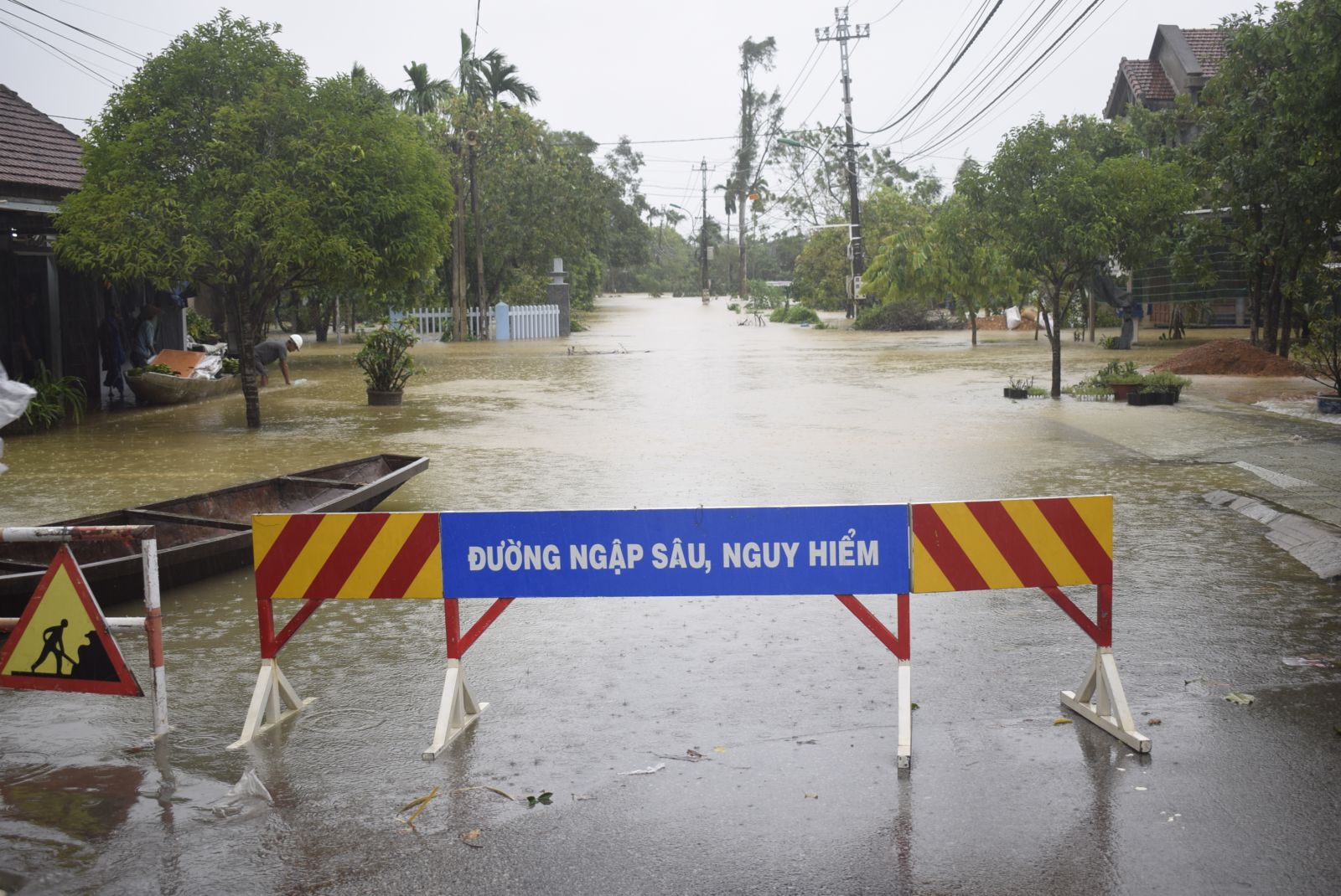 Nhiều đoạn đường ngập sâu, chính quyền địa phương đã dựng rào chắn cảnh báo