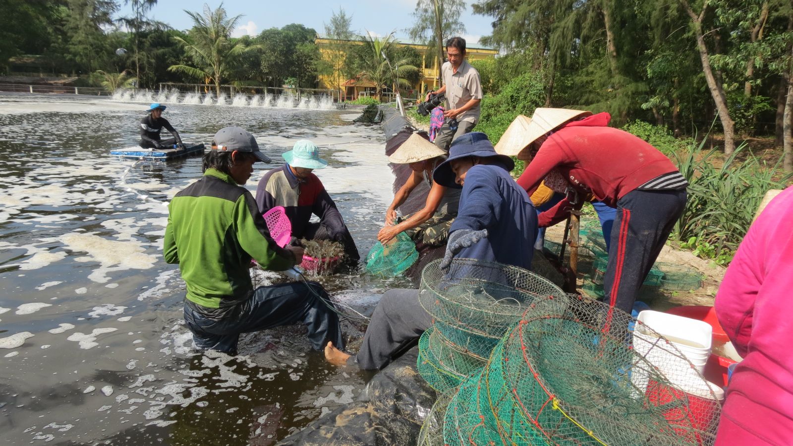 Thu hoạch tôm ở xã Phong Hải, Phong Điền