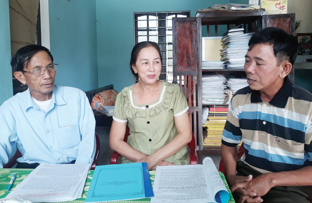 Chị Lê Thị Xoa cùng Trưởng Ban công tác mặt trận thôn và Chi hội trưởng Chi hội Nông dân thôn chuẩn bị trước Ngày hội Đại đoàn kết