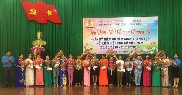 HNN.VN - Sáng 17/10, Liên đoàn Lao động (LĐLĐ) huyện Phong Điền tổ chức buổi tọa đàm nói chuyện chuyên đề nhân dịp kỷ niệm 88 năm năm thành lập Hội Liên hiệp Phụ nữ Việt Nam (LHPNVN) (20/10/1930 - 20/10/2018) tại Trung tâm Bồi dưỡng chính trị huyện. Tham dự có hơn 70 chủ tịch công đoàn cơ sở và cán bộ nữ công đến từ các đơn vị trực thuộc LĐLĐ huyện Phong Điền.