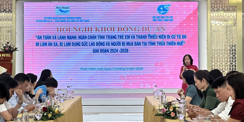 HNN.VN - Sáng 12/9, Hội Liên hiệp Phụ nữ (LHPN) tỉnh tổ chức Hội nghị khởi động dự án “An toàn và lành mạnh: Ngăn chặn tình trạng trẻ em và thanh thiếu niên di cư tự do đi làm ăn xa và bị lạm dụng sức lao động và người bị mua bán tại tỉnh Thừa Thiên Huế” giai đoạn 2024 – 2028.