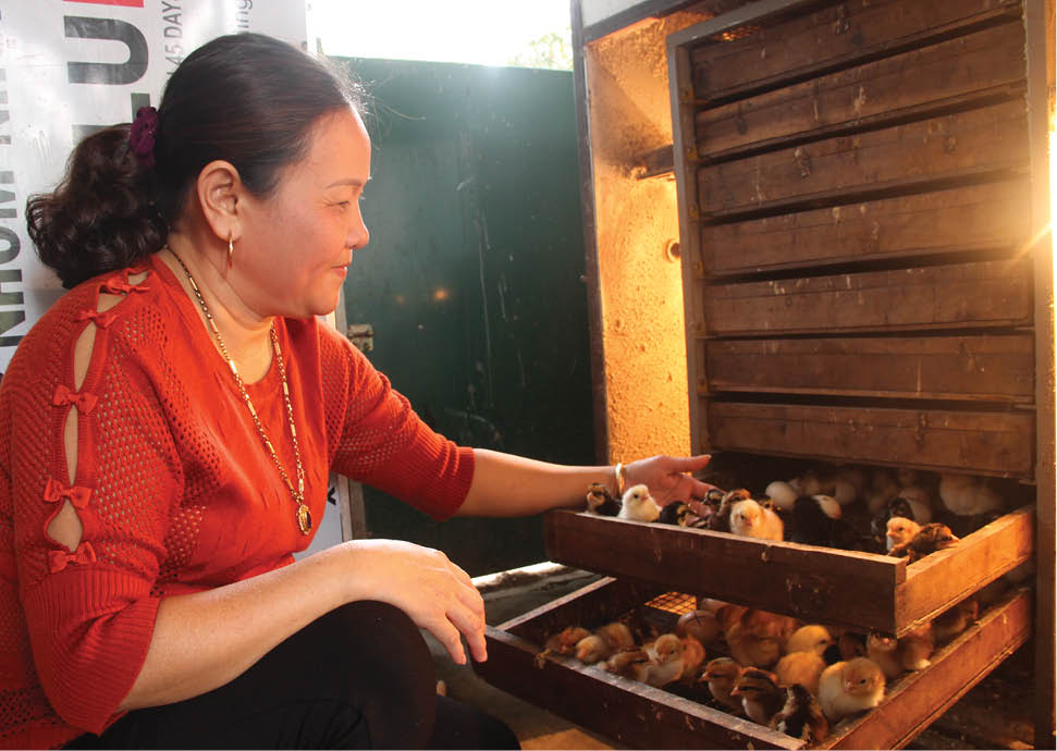 “Nhiều chị em vẫn chuộng cách ấp trứng truyền thống, tỷ lệ sống không cao. Tôi chủ yếu chỉ họ cách ấp trứng, tiêm phòng, chữa trị bệnh cho gà để ai cũng có thể chăn nuôi, phát triển kinh tế gia đình”, chị Lý nói.