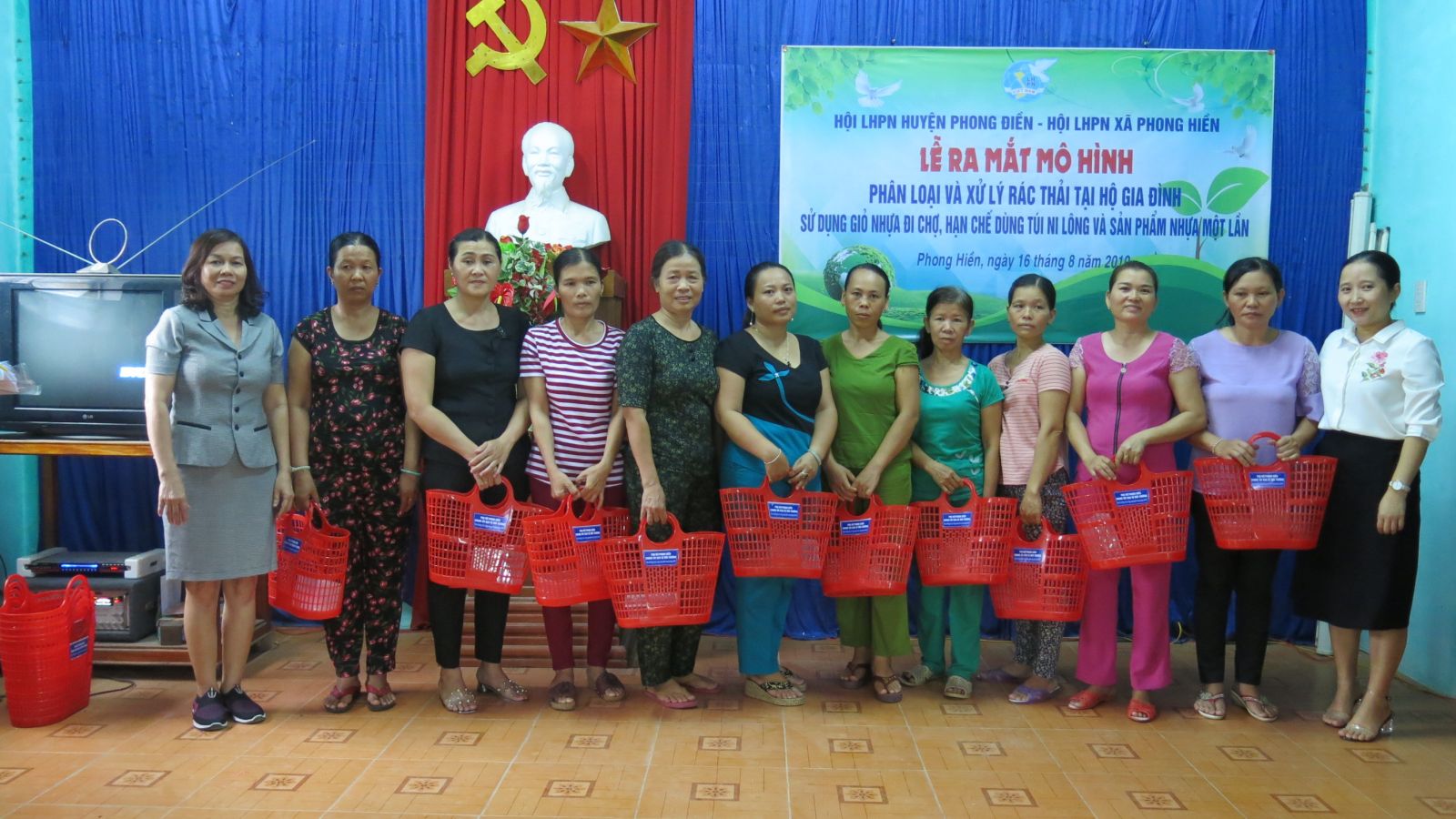 Hội LHPN huyện Phong Điền và các thành viên chi Hội Phụ nữ thôn Hiền Lương xã Phong Hiền đã tổ chức ký cam kết thực hiện tốt mô hình “phân loại và xử lý rác thải tại hộ gia đình, sử dụng giỏ nhựa đi chợ, hạn chế dùng túi ni lông và sản phẩm nhựa một lần ”. Dịp này, Hội LHPN huyện Phong Điền đã tặng hơn 240 giỏ nhựa đi chợ và hộp nhựa cho các chị em phụ nữ xã Phong Hiền.