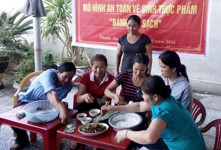 Trong ngày ra mắt mô hình an toàn vệ sinh thực phẩm "bánh lọc sạch" của phụ nữ thị trấn Thuận An