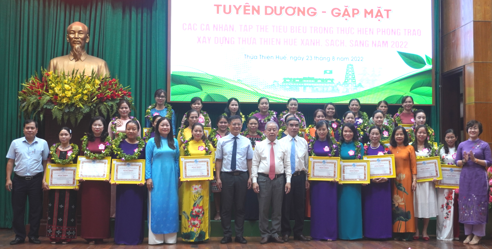 Từ những thành công đó, Hội LHPN tỉnh tổ chức khen thưởng cho 12 tập thể và 18 cá nhân tiêu biểu, xuất sắc trong thực hiện phong trào xây dựng Thừa Thiên Huế xanh, sạch, sáng. Họ là minh chứng sinh động, khẳng định vai trò của phụ nữ, tổ chức Hội trong giảm thiểu ô nhiễm môi trường và nâng cao chất lượng môi trường sống.