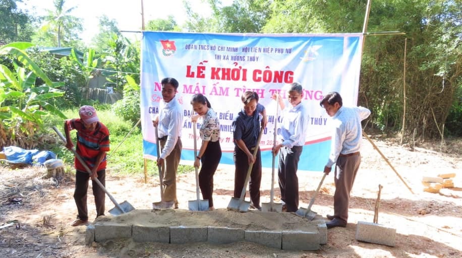HNN.VN - Chiều 11/6, Ban Thường vụ Hội Liên hiệp Phụ nữ (LHPN) thị xã Hương Thuỷ phối hợp với Thị đoàn khởi công xây dựng nhà “Mái ấm tình thương" cho chị Lê Thị Ve hội viên phụ nữ thôn 7, xã Thủy Phù.