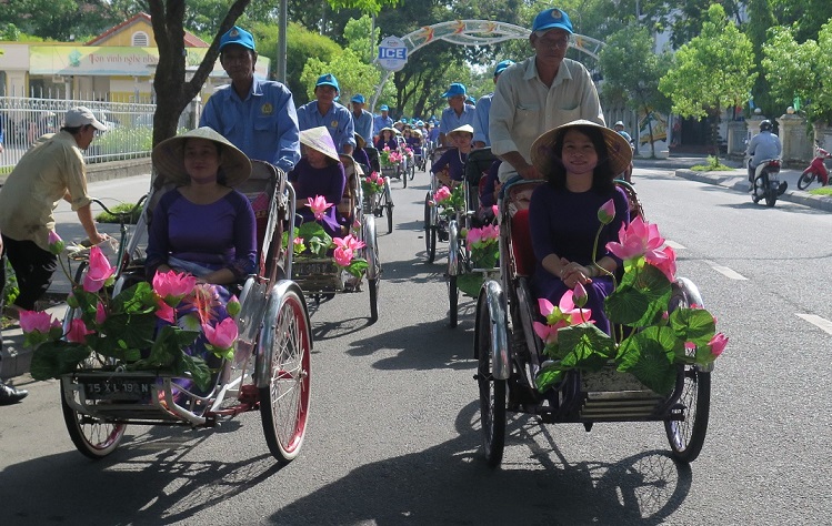 Ngay sau lễ phát động, các chị đã tham gia hoạt động tuần hành trên các tuyến phố chính bằng xích lô, dạo bộ trên cầu Tràng Tiền, cầu gỗ lim nhằm giới thiệu, tuyên truyền, quảng bá mô hình “Phụ nữ Huế - đồng hành cùng sắc tím”.