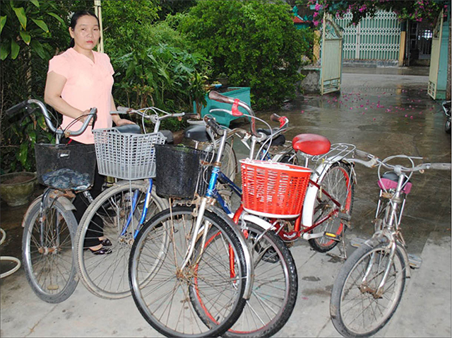 Chị Hạnh quyên góp xe đạp cũ và sơn sửa lại để tặng cho học sinh nghèo