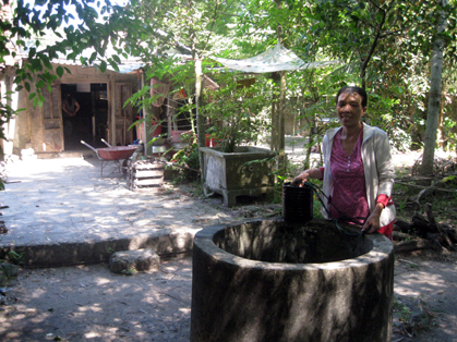 | Chị Kim (xã Lộc Thủy) lấy nước đưa ra chợ bán |