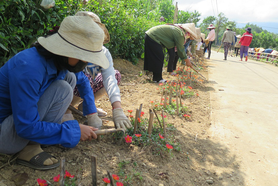 Chị em phụ nữ xã Hồng Quảng, huyện A Lưới xây dựng con đường hoa