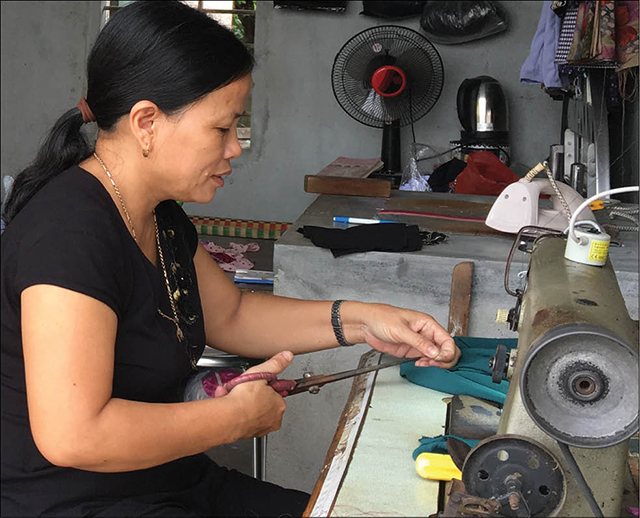 Chị Liên ngoài công việc may vá còn tích cực tham gia công tác tại Chi hội Phụ nữ thôn Cao Xá (Phong Hiền, Phong Điền)
