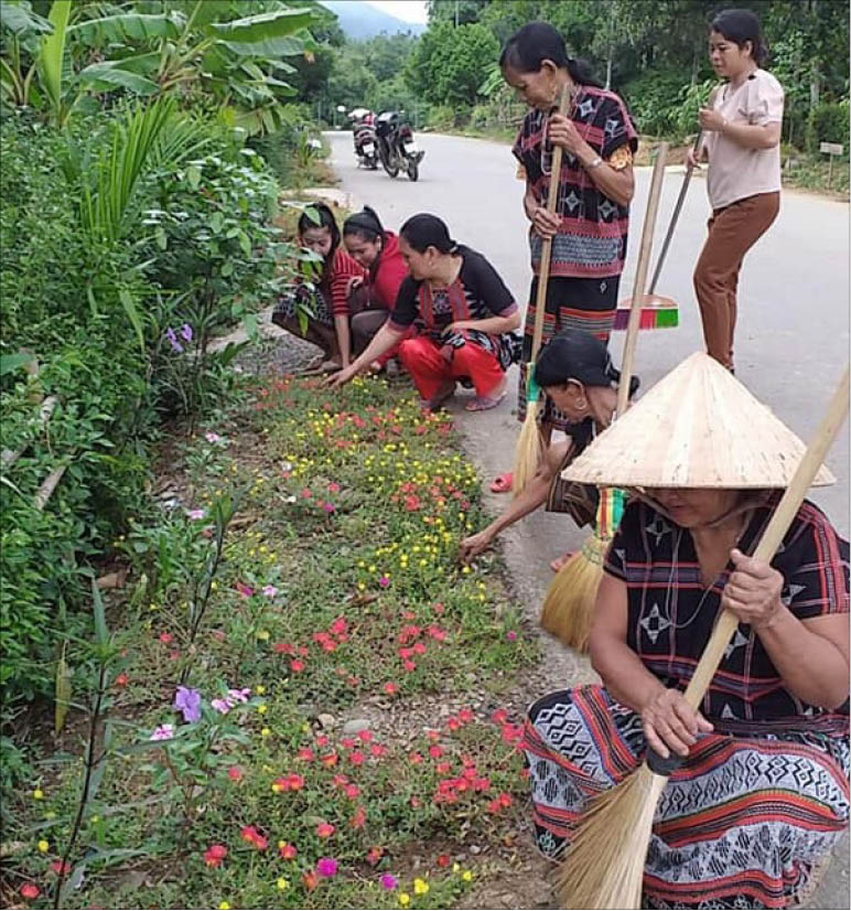 Phụ nữ Ta Rung ra quân làm vệ sinh môi trường