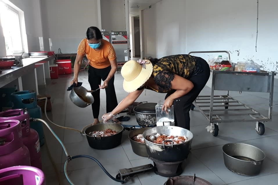 Cơm ngon, canh ngọt phục vụ người cách ly luôn được các chị hoàn thành đúng giờ