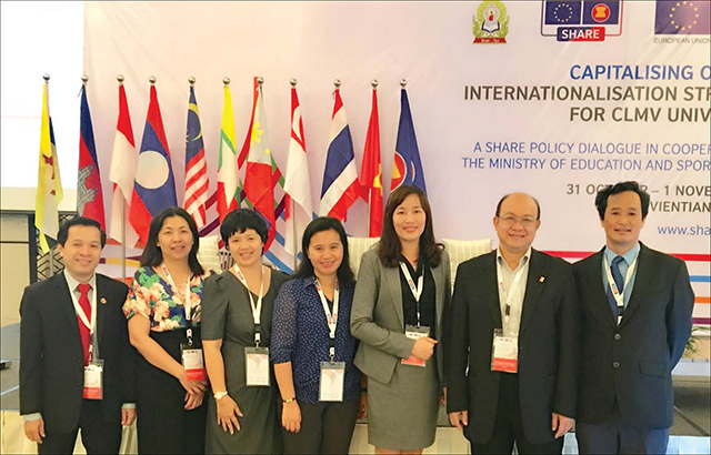 TS. Đỗ Thị Xuân Dung, Phó Giám đốc ĐH Huế (thứ ba, phải sang) tham gia diễn đàn đối thoại quốc tế hóa trong giáo dục ĐH ASEAN. Ảnh: NVCC