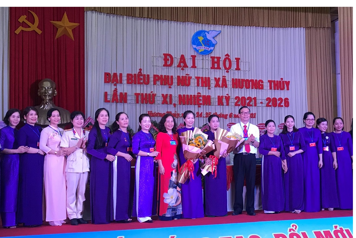 Tặng hoa chúc mừng đội ngũ BCH Hội LHPN thị xã Hương Thủy Khóa XI, nhiệm kỳ 2021 - 2026