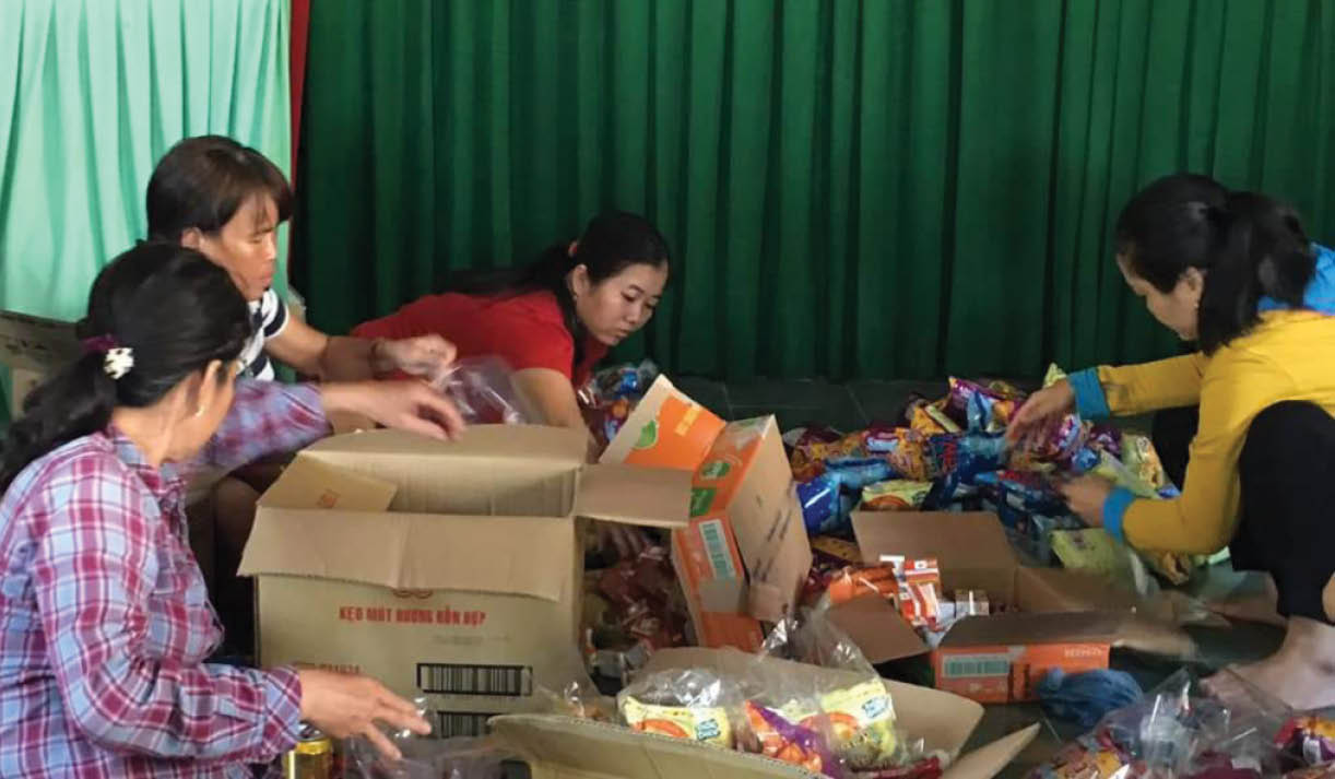Hội viên phụ nữ xã Phú Thượng chuẩn bị quà tặng học sinh nghèo học giỏi dịp Trung thu