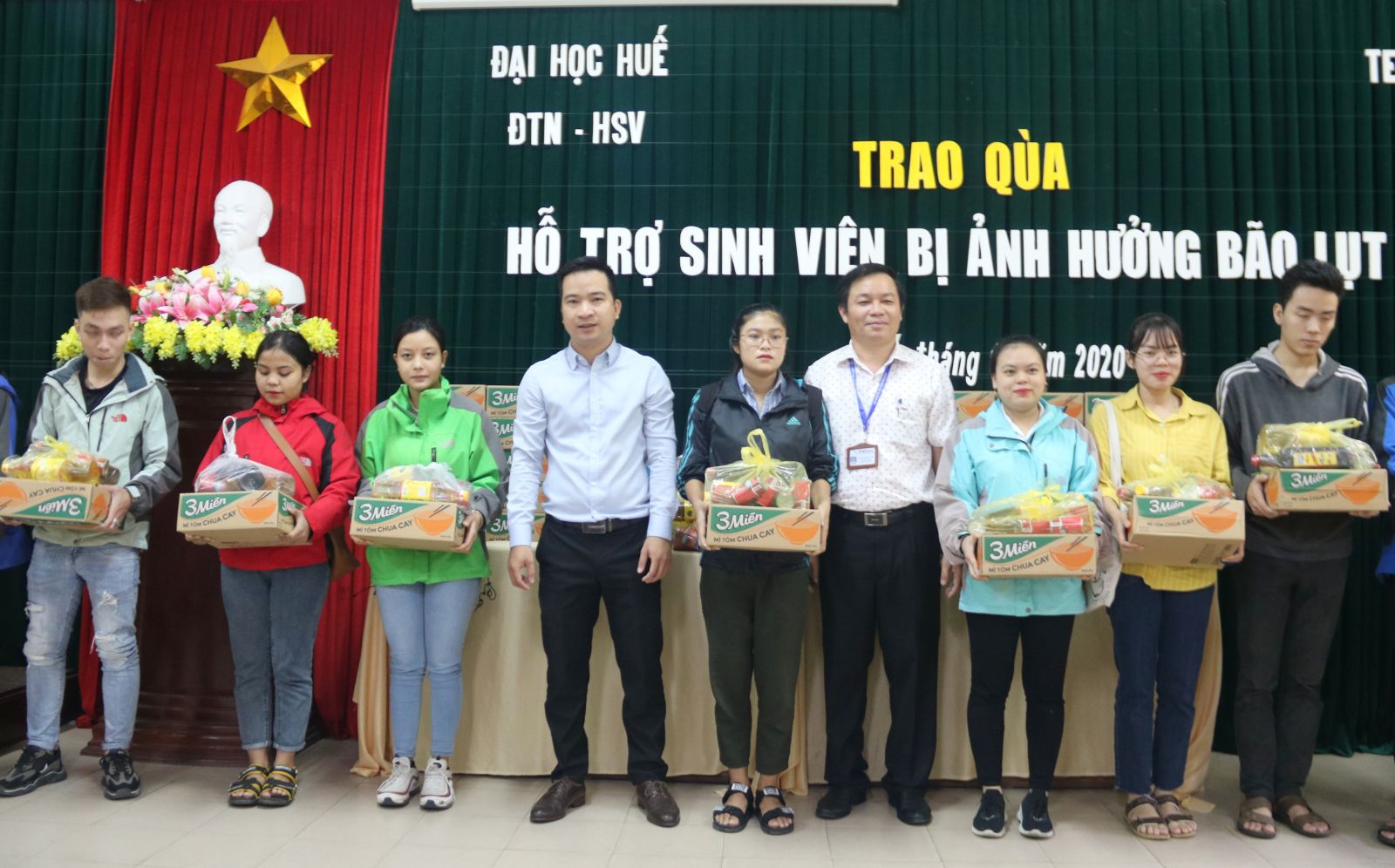 Cùng ngày, tại Trường ĐH Nông Lâm, ĐH Huế phối hợp cùng các đơn vị, tổ chức, nhà tài trợ trao 100 suất quà cho sinh viên có hoàn cảnh khó khăn bị ảnh hưởng do bão lũ. Mỗi suất quà trị giá khoảng 150 nghìn đồng.