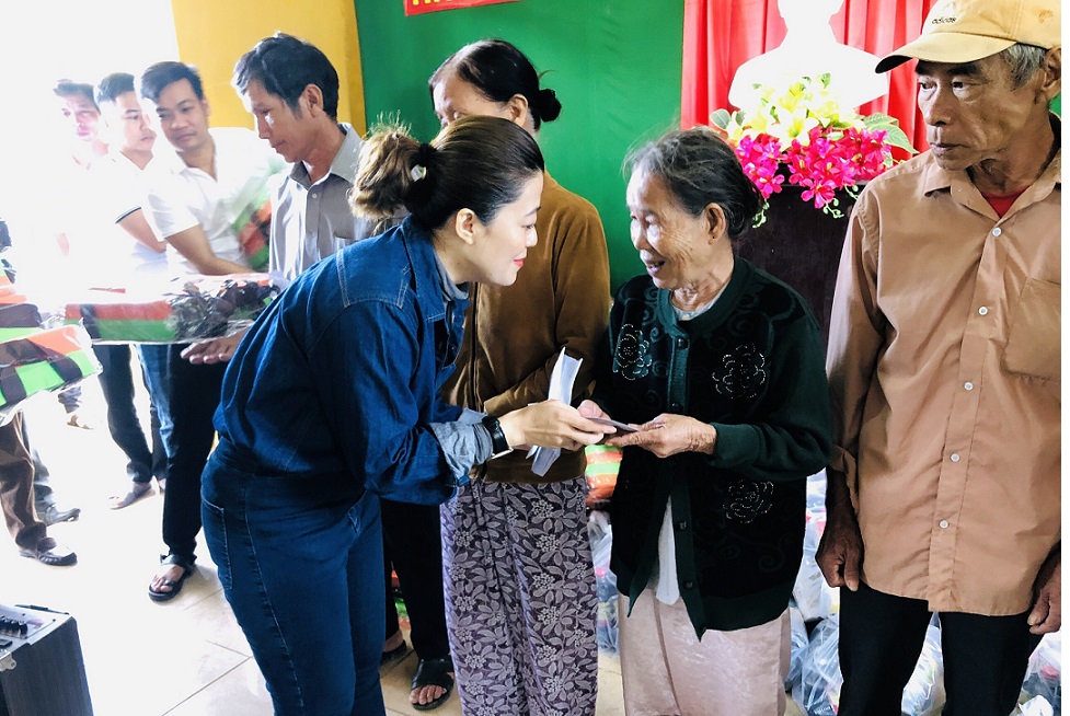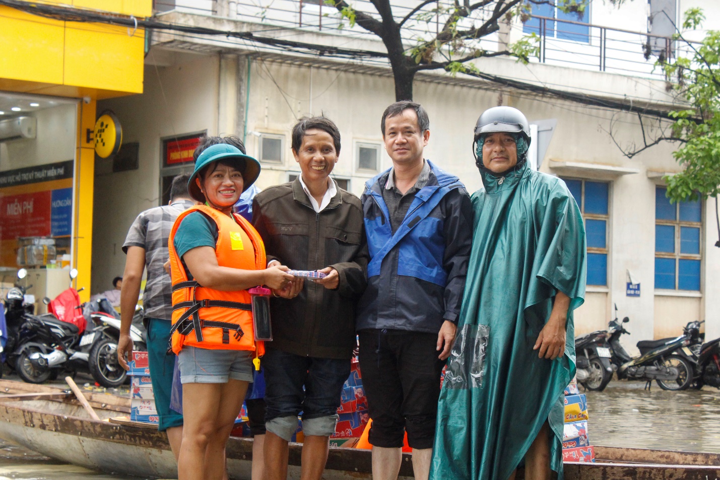 Trao tiền mặt cho các hộ dân bị ảnh hưởng nặng do mưa lũ