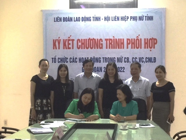 HNN.VN - Chiều 5/4, Liên đoàn Lao động tỉnh phối hợp với Hội Liên hiệp Phụ nữ tỉnh tổ chức lễ ký kết chương trình phối hợp tổ chức các hoạt động trong nữ cán bộ, công chức, viên chức và công nhân lao động (CBCCVC và CNLĐ) giai đoạn 2017 – 2022.