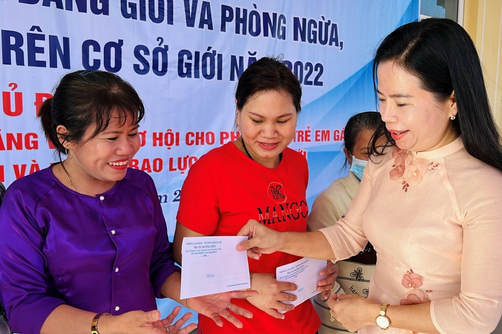 Dịp này, UBND TX. Hương Thủy đã tặng 5 suất quà, mỗi suất 300 ngàn đồng động viên các phụ nữ vượt khó trên địa bàn.