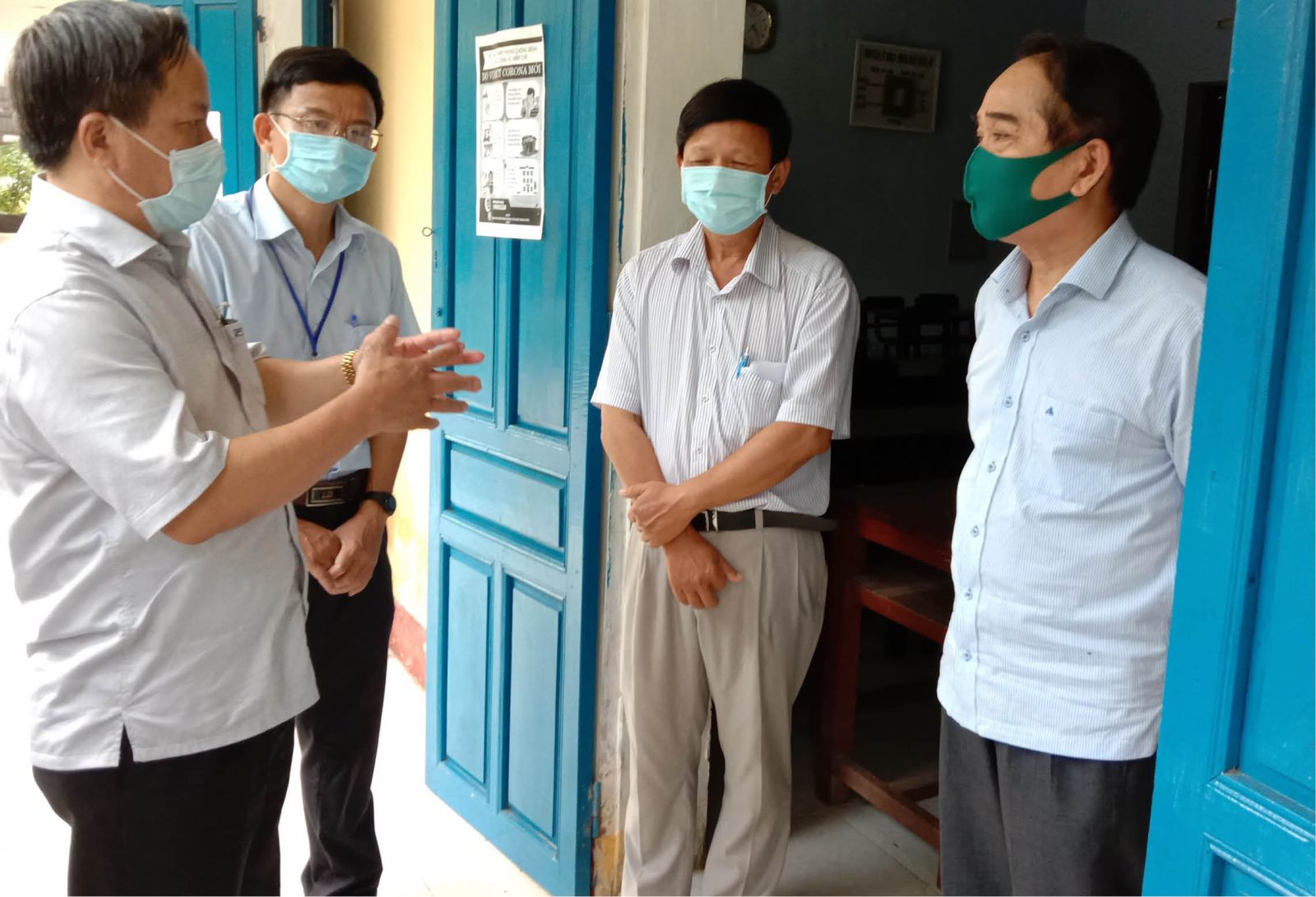 Phó Bí thư Thường trực Tỉnh ủy Bùi Thanh Hà (đầu tiên bên phải) thăm khu cách ly tại Trường dạy nghề trên địa bàn xã Phú Dương