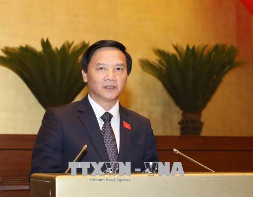 Chủ nhiệm Ủy ban Pháp luật của Quốc hội Nguyễn Khắc Định trình bày Báo cáo giải trình, tiếp thu, chỉnh lý dự án Luật Tố cáo (sửa đổi). Ảnh: Phương Hoa/TTXVN