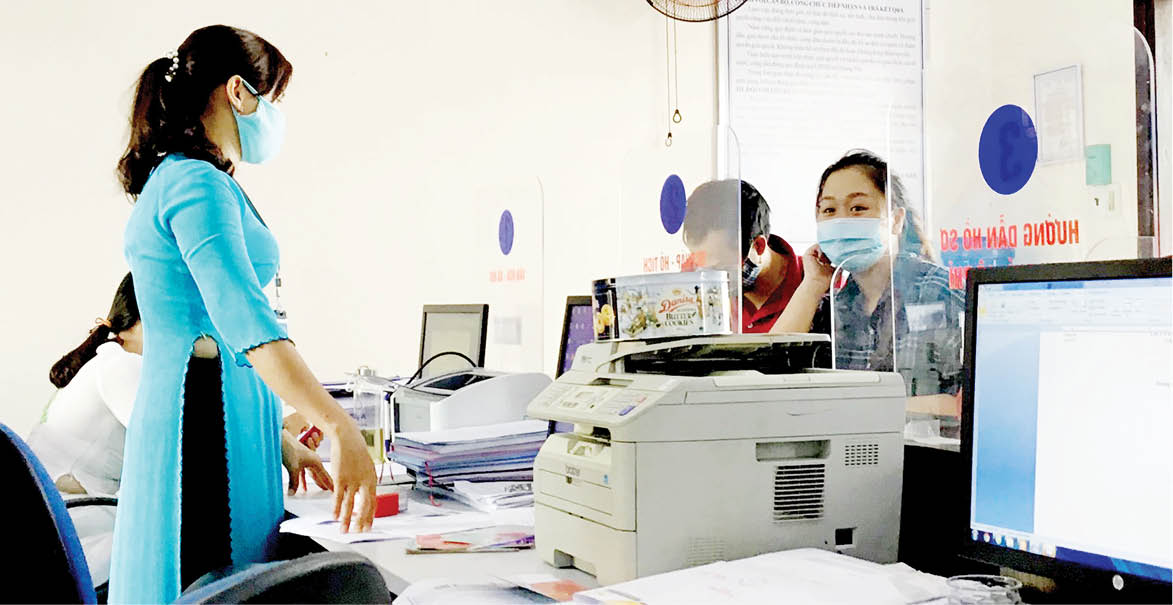 Cán bộ bộ phận “một cửa” ở Quảng Thọ tiếp nhận, xử lý các thủ tục, giấy tờ cho người dân