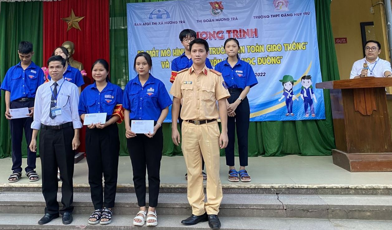 Tại chương trình đã tổ chức trao tặng 2 mô hình cổng trường ATGT đặt tại 2 cổng trường với thông điệp: “Hãy tuân thủ đội mũ bảo hiểm khi tham gia giao thông” và “Đi đúng đường, nhường đúng lối, không cần vội, vui tới nhà”; tổ chức ký cam kết tham gia giao thông an toàn cho Đoàn viên, học sinh Trường THPT Đặng Huy Trứ và trao giải cuộc thi “Phía trước tay lái là sự sống”.