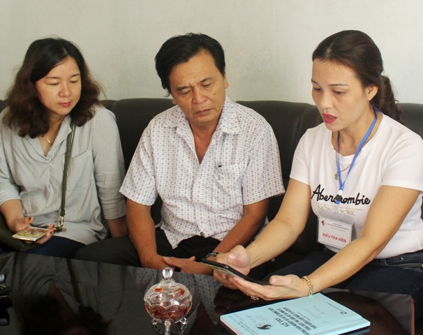 Điều tra viên phường Phú Bài (ngoài cùng, bên phải) tiến hành điều tra hộ gia đình tại địa bàn