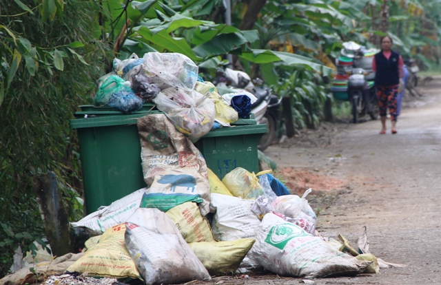 Các thùng rác dọc hai bên đường trở nên "quá tải"