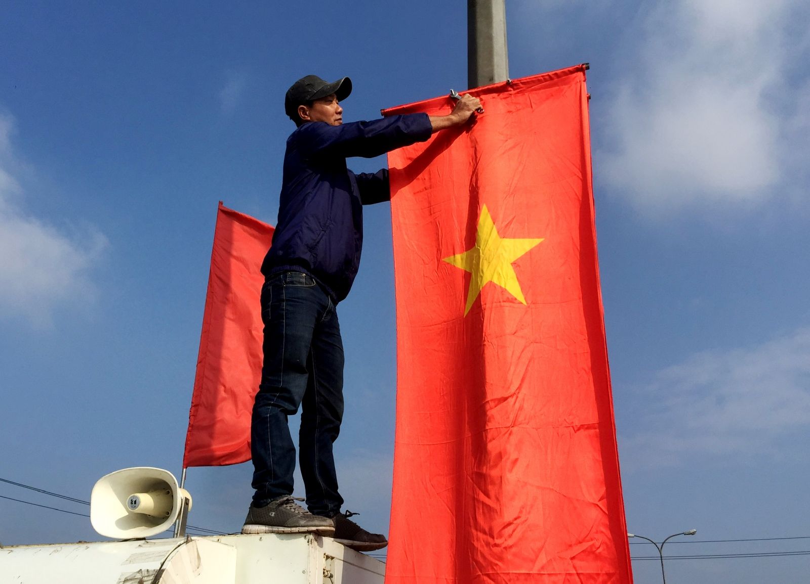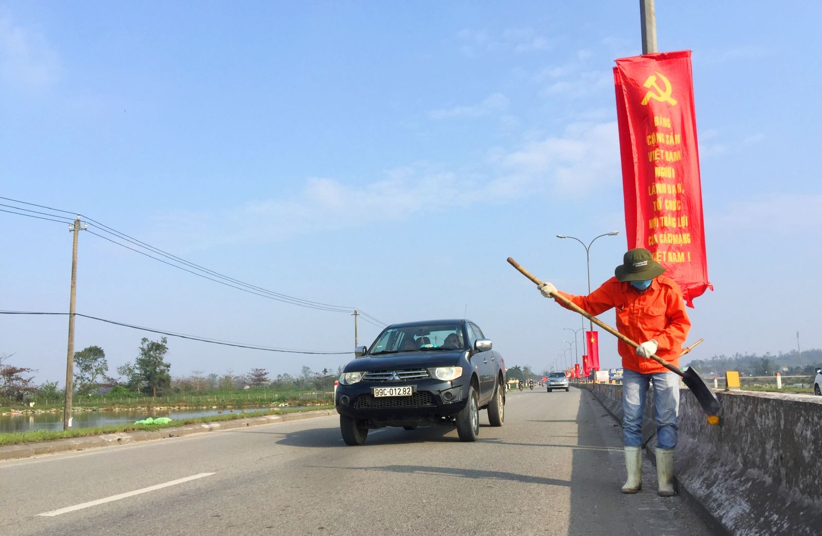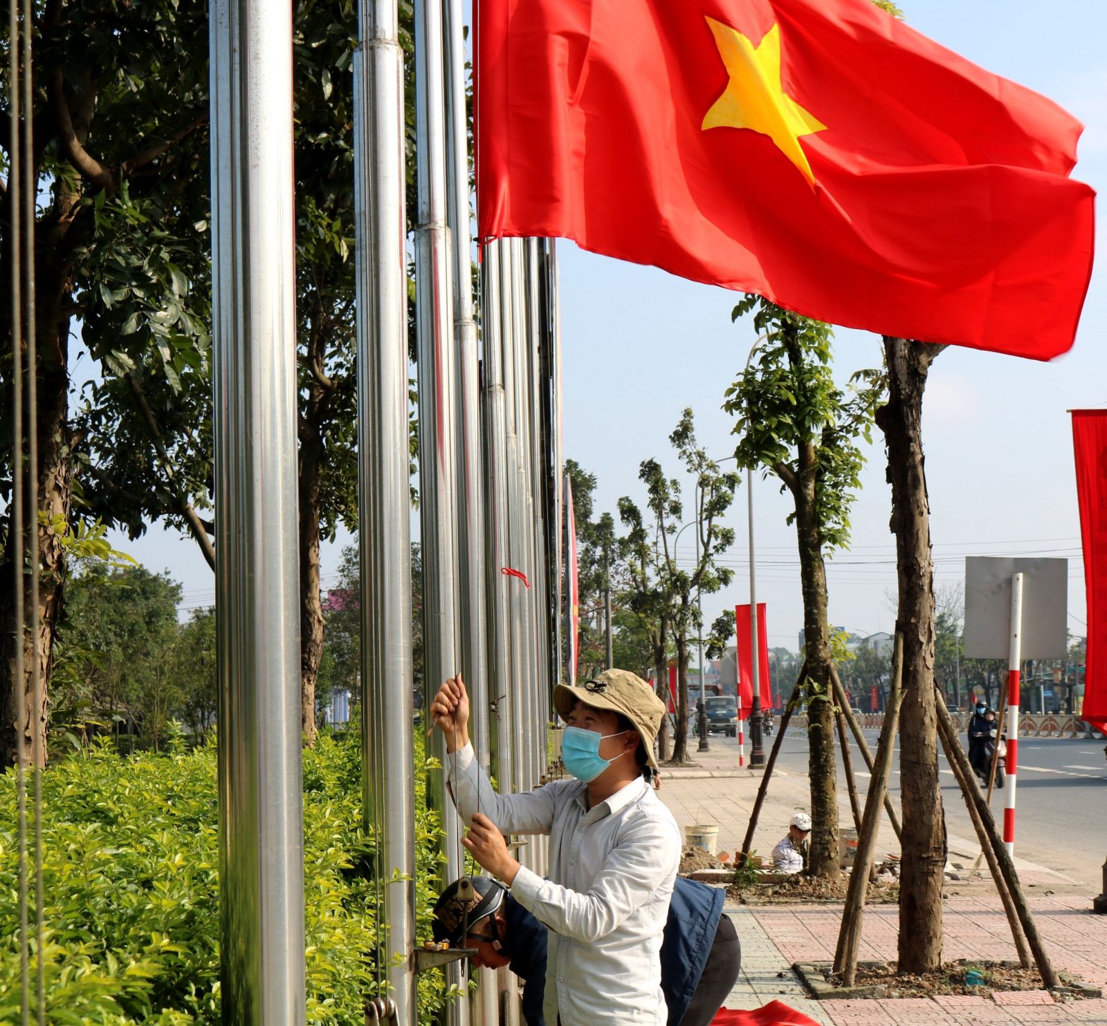 Treo cờ Tổ quốc dọc tuyến đường qua cánh đồng Thanh Lam (thị xã Hương Thủy)