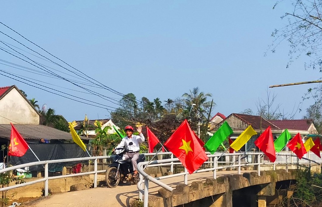 Không khí chào mừng Đại hội đại biểu toàn quốc lần thứ XIII của Đảng lan tỏa về tận thôn, tổ của Hương Thủy. Trong ảnh: cầu Bến Lội ở thôn 10, xã Thủy Phù.