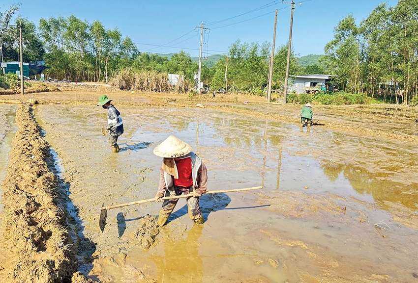 | Người dân xã Xuân Lộc, huyện Phú Lộc gieo sạ vụ lúa mới |