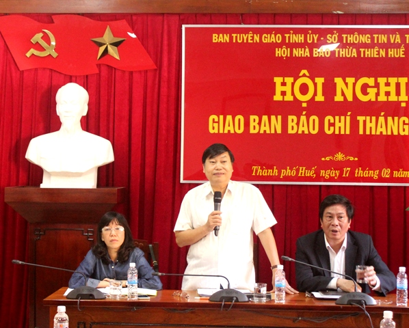 Phát biểu tại hội nghị, Phó Bí thư Thường trực Tỉnh ủy Bùi Thanh Hà khẳng định, thời gian qua các cơ quan thông tấn báo chí trên địa bàn tỉnh đã đóng góp nhiều ý kiến quan trọng trên tất cả các lĩnh vực kinh tế - xã hội - đời sống của tỉnh. Tinh thần của lãnh đạo tỉnh là tập trung khắc phục những tồn tại, hạn chế mà báo chí đã nêu. Việc giao ban báo chí từ nay sẽ được tổ chức định kỳ hàng tháng. Trong giao ban, ngoài định hướng tuyên truyền, cần cung cấp thêm thông tin cho các cơ quan báo chí; đánh giá những việc mà báo chí đã tập trung tuyên truyền. Giao ban báo chí cũng cần được tổ chức bài bản, khoa học và ngày càng chuyên nghiệp hơn. Cần có sự liên kết, kết nối giữa các ngành chức năng với báo chí, kể cả lãnh đạo tỉnh. Không khí sinh hoạt báo chí cũng cần sôi động hơn. Trên cơ sở đó, phát huy cái tốt, tập trung khắc phục cái chưa tốt. Thời gian tới, tỉnh sẽ phân công người chịu trách nhiệm phát ngôn với báo chí; đôn đốc các cơ quan chức năng sớm trả lời những vấn đề mà báo chí quan tâm. Mong rằng, các nhà báo mạnh dạn đề xuất, hiến kế để lãnh đạo tỉnh tập trung lãnh, chỉ đạo tốt hơn nữa... nhằm chung tay đưaThừa Thiên Huế ngày càng phát triển.