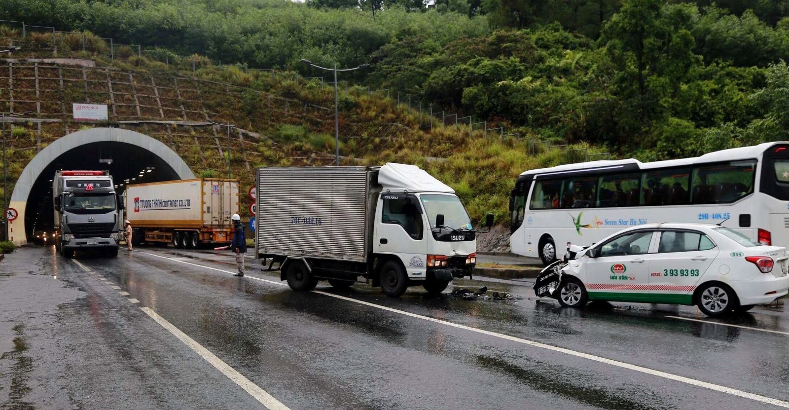 Một vụ tai nạn giao thông có liên quan đến xe taxi tại đường dẫn vào hầm Phước Tượng (Phú Lộc)