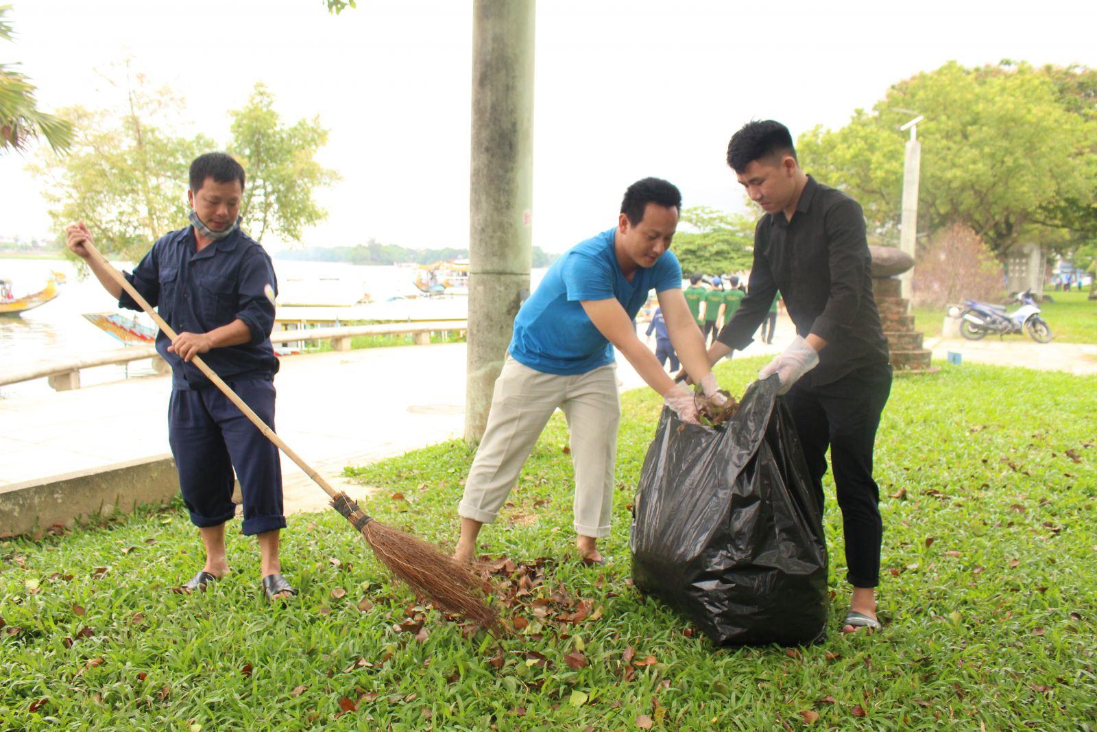 Tại lễ ra quân, các tình nguyện viên đã làm sạch rác ở -tất cả các công viên từ Bảo tàng Hồ Chí Minh đến Bến thuyền Tòa Khâm, đường đi bộ Nguyễn Đình Chiểu và trên sông Hương từ cầu Trường Tiền đến Đập Đá.