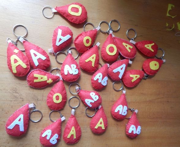 Những chiếc móc khóa handmade ngộ nghĩnh có hình giọt máu và tên nhóm máu