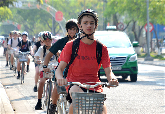 Du khách đạp xe tham quan Huế. Ảnh: Đức Quang